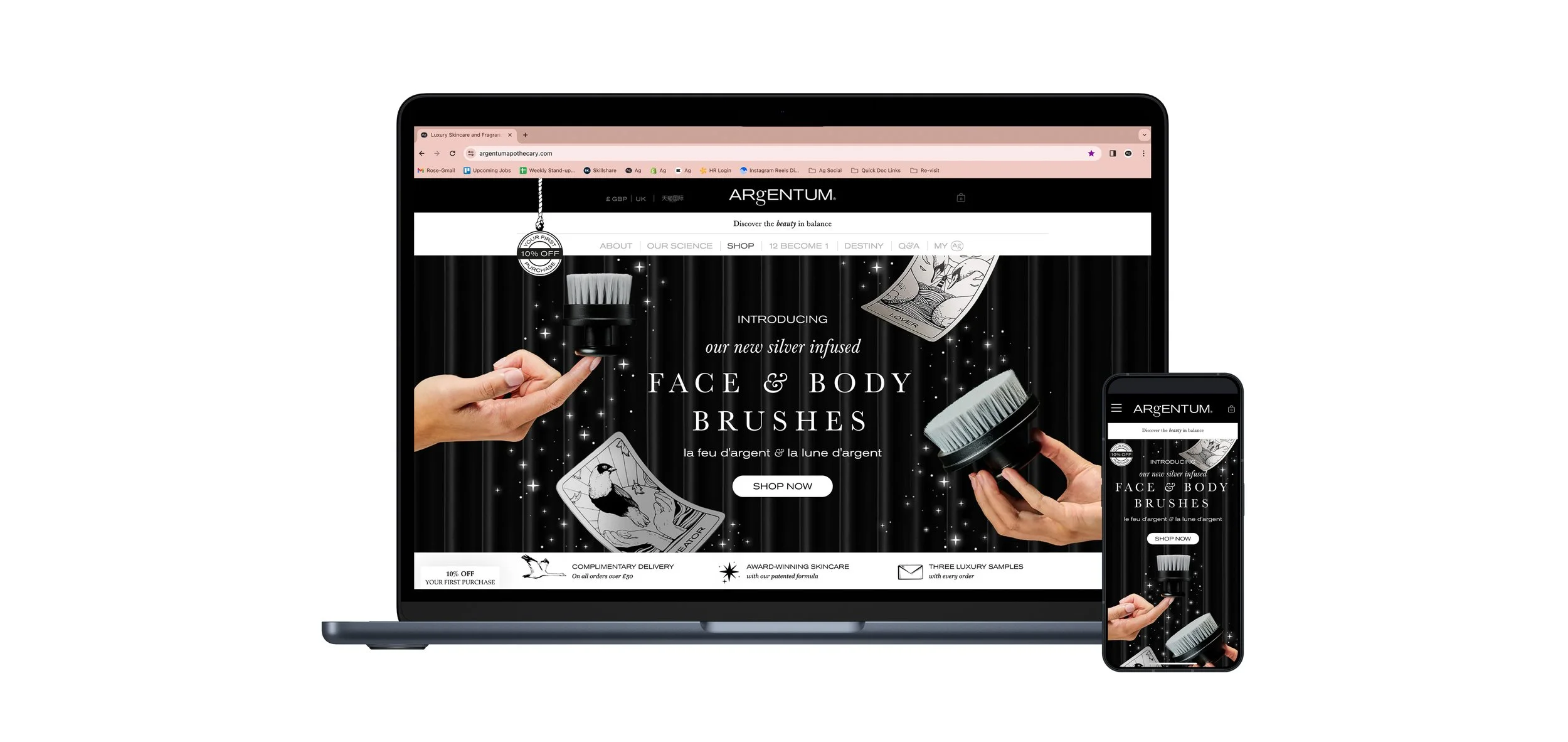 To support the launch of Argentum’s new face and body brush, the objective was to create luxurious, product-focused imagery that highlights the brush’s texture, design, and tactile quality. The goal of the shoot was to convey a premium, sensual feel, aligning with Argentum’s skincare range and visual identity.